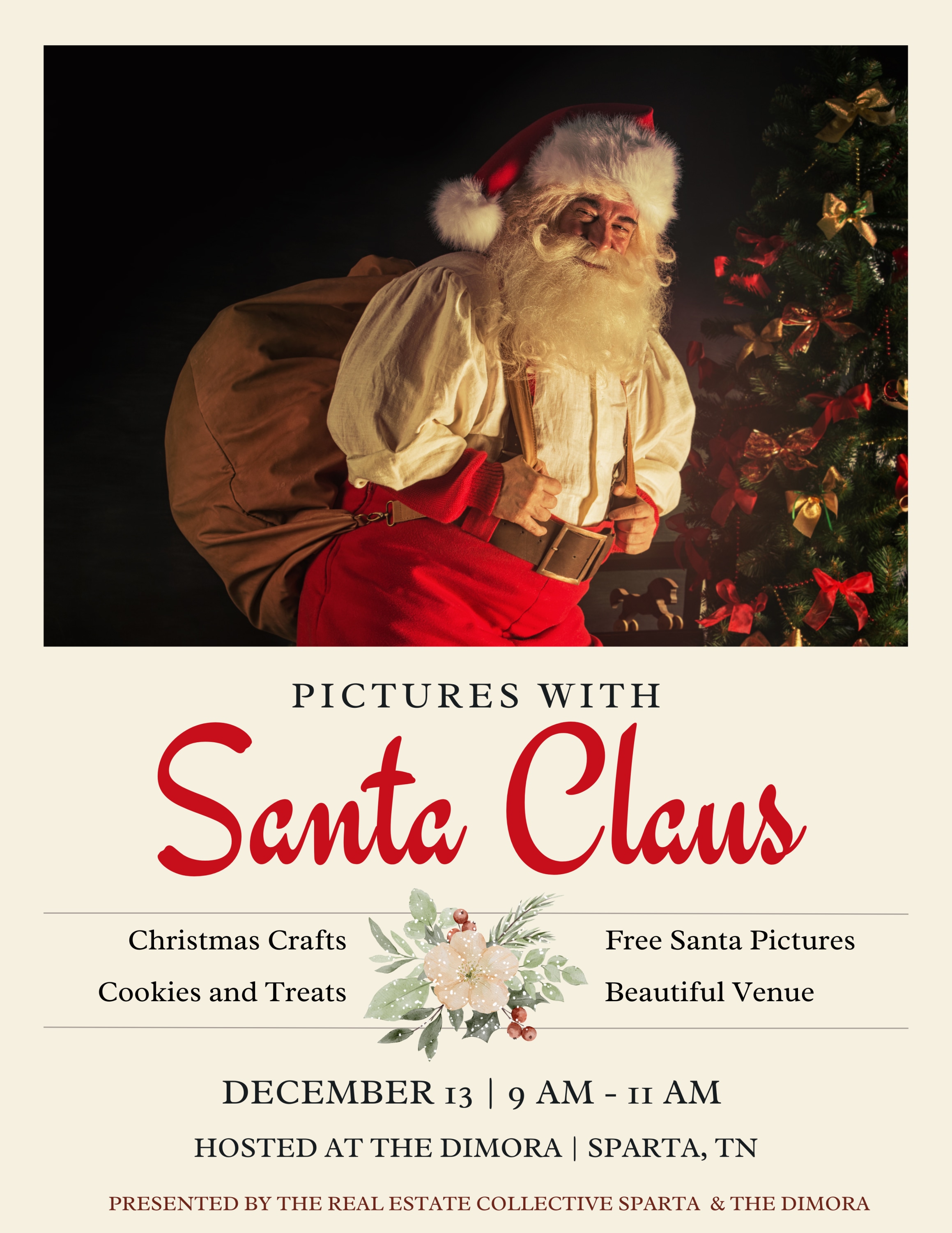 🎄✨ Join The Real Estate Collective Sparta and The Dimora for Pictures with Santa on Saturday, December 13th from 9–11 AM in Sparta.